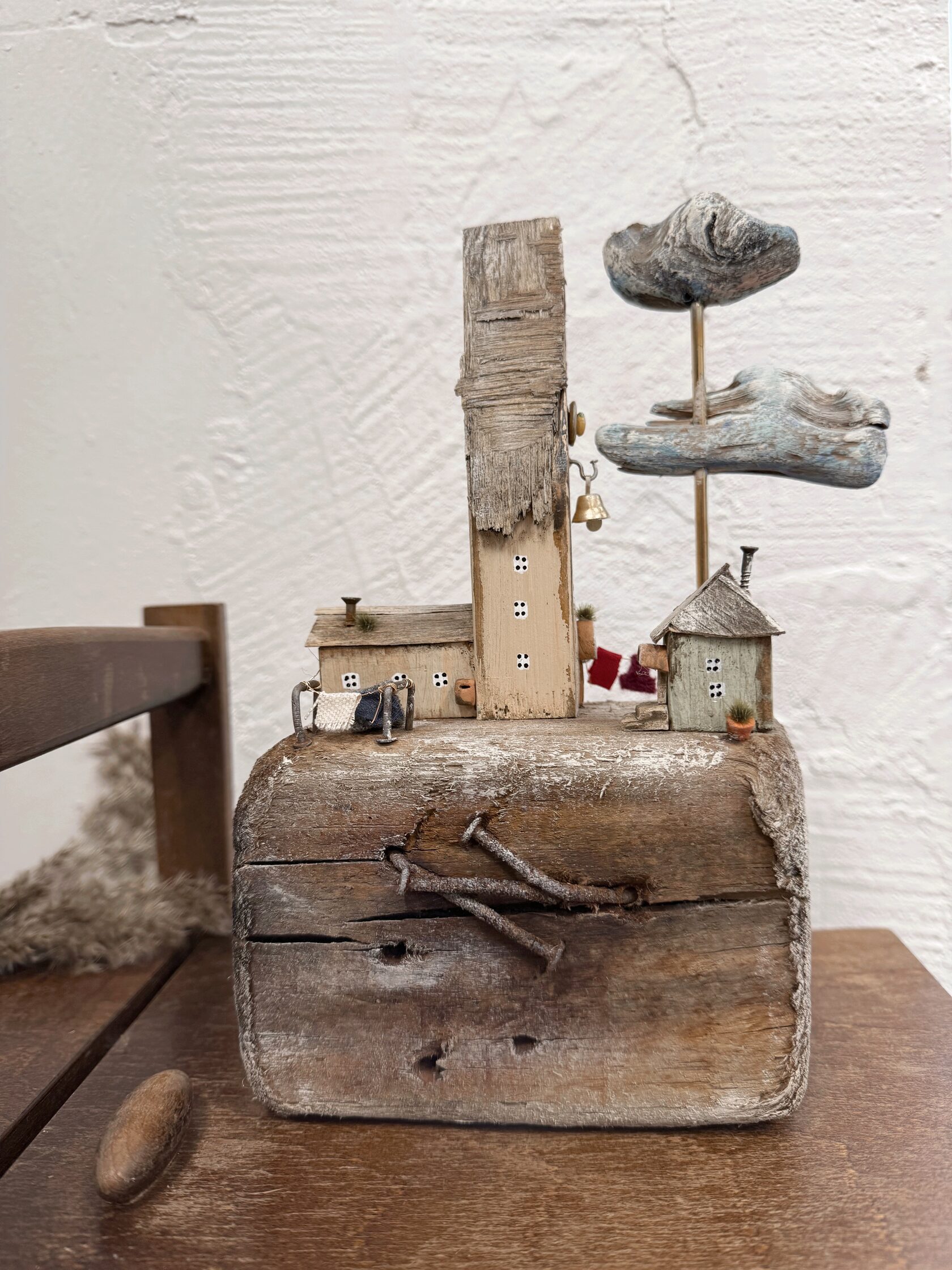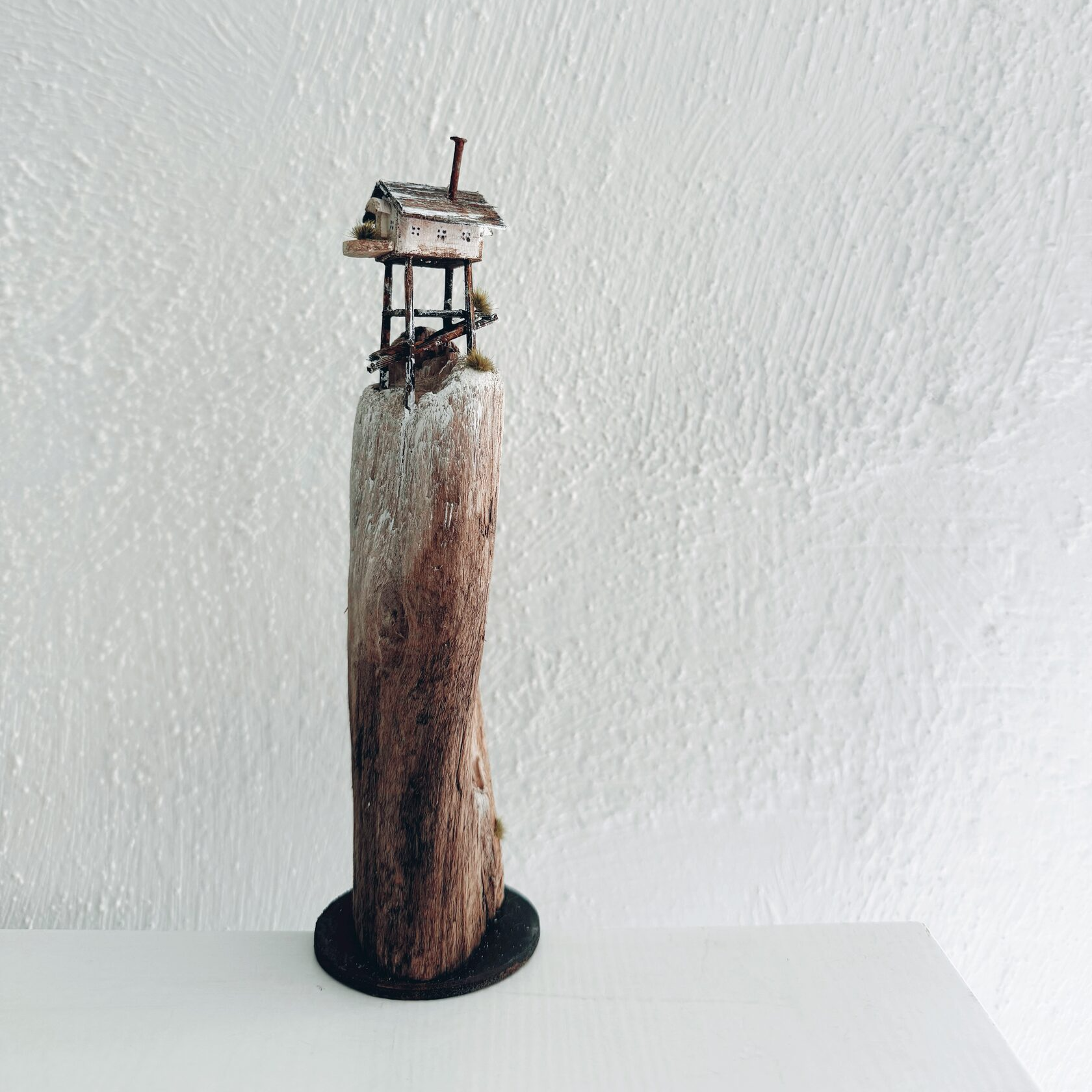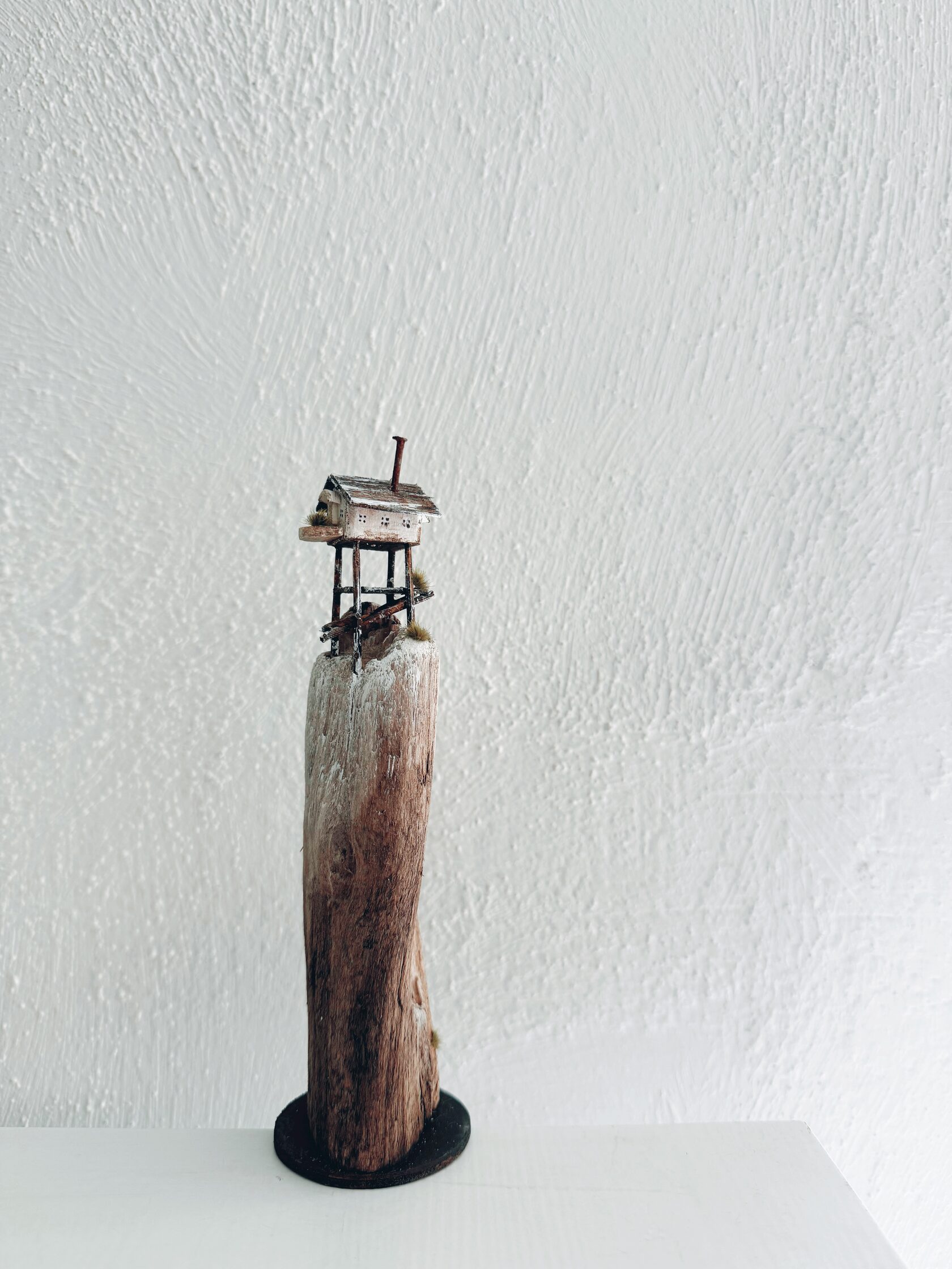 This one-of-a-kind piece brings together a slender chapel, a small outbuilding, a line of linen drying in the breeze, two drifting clouds, old nails that hold forgotten stories, and a tiny pot of green life at its doorstep. Every detail is assembled by hand in our studio — we never rush, we never force the shape. Sunday Chapel Driftwood invites you to slow down, breathe, and feel a sense of sacred simplicity in your everyday space. Place it on a shelf, an altar, or a windowsill — let it remind you of seaside stillness and the poetry of humble things. 🌿 Responsibly gathered driftwood from Estonian beaches. ✨ One-of-a-kind, handmade with care. 🌊 A timeless piece for dreamers and collectors of nature’s quiet art.